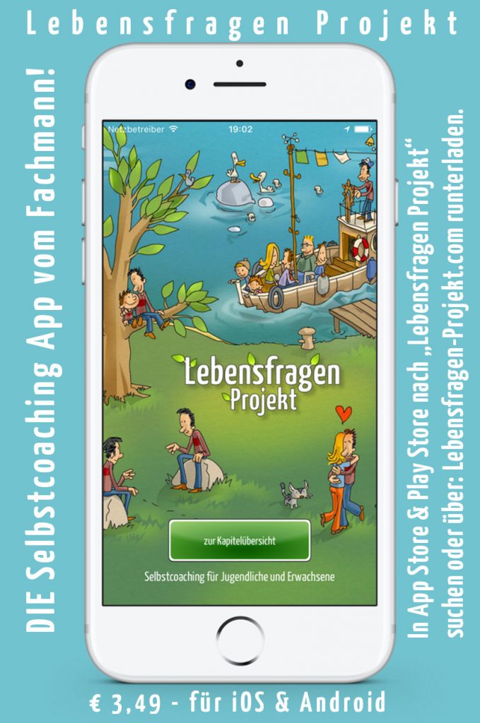 Das Lebensfragen Projekt ist DIE Selbstcoaching App für iOS und für Android vom Fachmann, welche spielerisch dazu anregt, sich selbst besser kennen zu lernen. Die App kostet € 3,49.